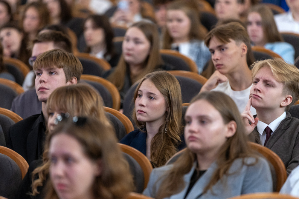 After the lyceum assembly, a special ceremony for first-year university students took place. In 2025, over 900 students enrolled in the educational programmes at the HSE Campus in Perm. Everyone who attended the event in the Grand Hall of the Perm Regional Philharmonic not only received congratulations from the Mayor of Perm but also heard words of encouragement from the HSE rector himself. Nikita Anisimov urged students to pursue their goals and to hold on to their values both during their studies and after graduation, and he thanked the teaching staff for their hard work and care for students. The Director of HSE Campus in Perm, Galina Volodina, echoed the rector’s words and congratulated the first-years on joining an honest and supportive university community. Mayor Eduard Sosnin also had some inspiring words for the students—words carrying special weight, as he is an HSE Perm graduate himself and knows what it means to be part of HSE University.