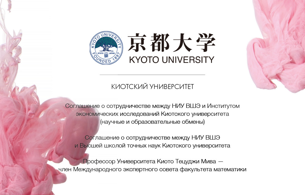 Главным исследовательским центром в области экономики Киотского Университета является Киотский институт экономических исследований, который находится непосредственно в кампусе университета, неподалеку от здания факультета экономики. Институт является партнером НИУ ВШЭ. Его директор Сатоши Мизобата (Satoshi Mizobata) занимается исследованием российской экономики и много раз был в НИУ ВШЭ с выступлениями на конференциях, краткосрочными исследовательскими визитами. Несколько исследователей из НИУ ВШЭ также посещали институт в качестве приглашенных исследователей.