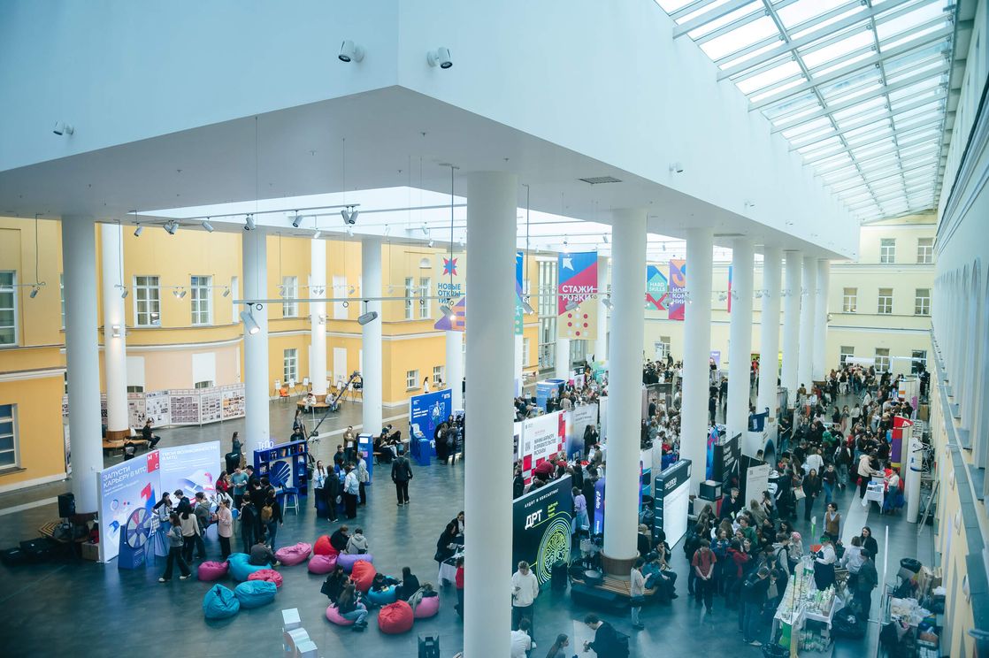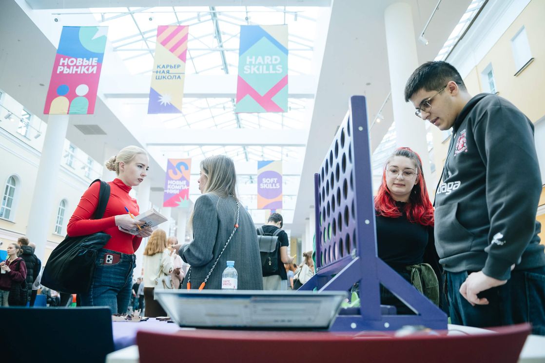 В середине ноября в центральном атриуме НИУ ВШЭ на Покровском бульваре прошел масштабный Карьерный марафон для студентов. Событие позволяет учащимся узнать об актуальных стажировках и возможностях для старта карьеры, а также наладить контакт с представителями компаний. Организатор мероприятия — Центр развития карьеры ВШЭ.